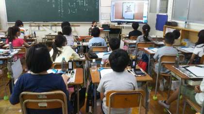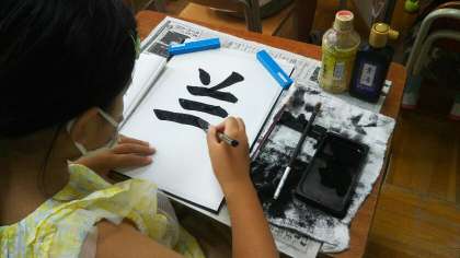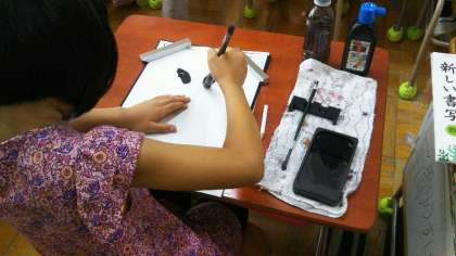 デジタル教科書も活用しながら、書写担当の先生が、丁寧に指導していました。