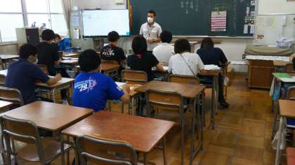 先輩の教員が、これまでの自身の実践に基づいた指導法について、後輩の教員に紹介しています。
