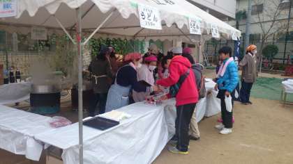 (中)お母さん方には、おもちの仕上げをお願いしました