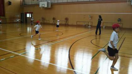 そんな中、2年生が、体育館でなわとび「かけあしとび」をしていました。子どもたちは、とても楽しそうに取り組んでいました。