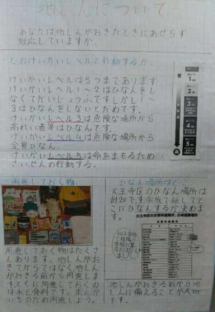 6年生が、災害時の備えについて、新聞にまとめていたので紹介します。