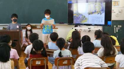 6年生が、平和学習の一環で、各学年の教室に赴き、戦争に関する絵本の読み聞かせをしました。