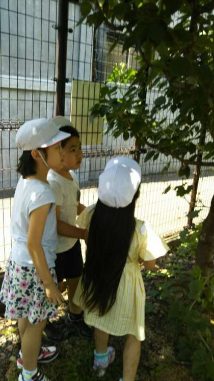 2年生の子たちが、「セミの抜け殻ないかなぁ。」と、探していたので、一緒に学習園に行ってみました。