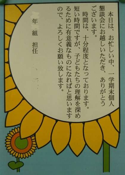 本日(3日)から4日間(6日まで)個人懇談会を行います。