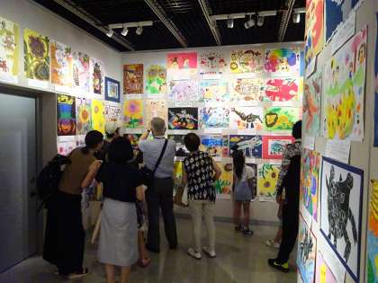 今年は、新型コロナウィルス感染症の影響で、短くなった夏休みですが、身近な場所でお子様と図画作品を鑑賞していただき、夏休みの課題の参考にしていただいたり同世代の子どもたちの表現を味わっていただいたりする場になればとの思いで、ご案内させていただきます。