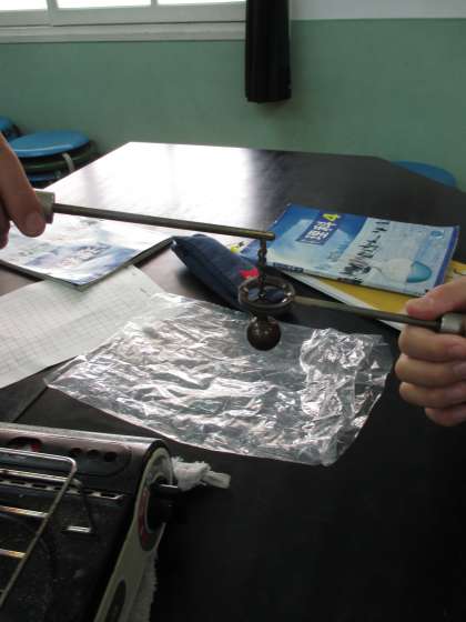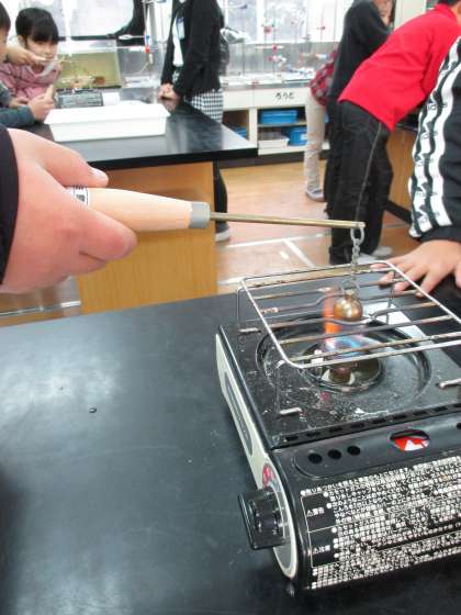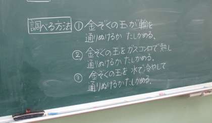 (中)金属の玉が輪を通りぬけるかたしかめる