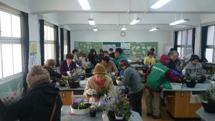 多くの地域の方が参加され、きれいな寄せ植えが出来上がっていきました。