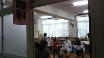 大阪市では、教育委員会の指示により各小学校で、校医先生に来ていただき、教職員も一部検査(視力や聴力など)を担当して行われます。