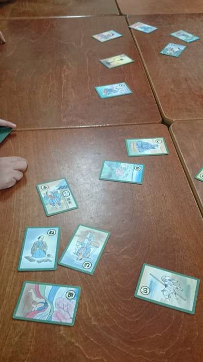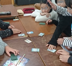 この縦割り班で、昔遊びの中から、おはじき、かるた、百人一首など楽しみました。