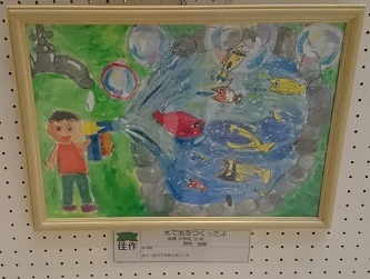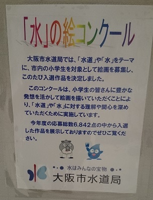 大阪市水道局主催の「水」の絵コンクールの入賞作品が展示されています。