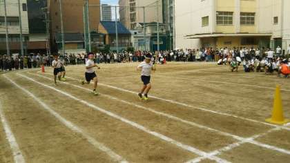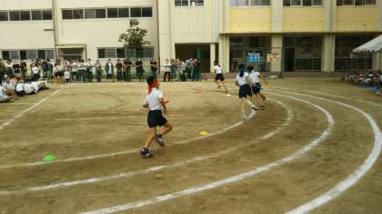 4年生からは、バトンを使ってのリレー。4年生の子どもたち、初めてバトンリレーをするのに、とてもスムーズにバトンパスができていました。