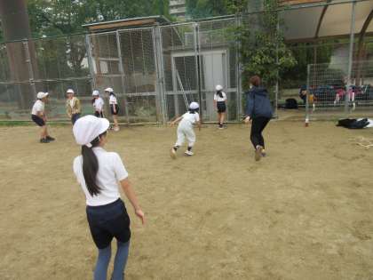 インタビューが終わり、一旦学校に戻り、雨がすこしパラっとしていたので、お弁当を教室で食べました。その後、真田山公園に向かいました。グランドを借りていたので、広いスペースを使い放題でした。フリスビーやだるまさんが転んだ等、みんなそれぞれ楽しみました。コロナ禍でずっと制約がある中での遊びが続いていたので、子どもたちはとても楽しいと大喜びでした。