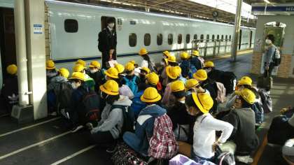 まもなく出発します。 修学旅行専用の新幹線に乗車します。