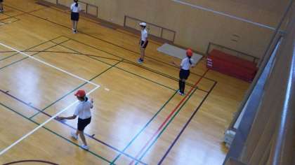 5年生が体育で、短縄跳びの学習をしていました。なわとびカードを使って、いろいろな跳び方にチャレンジしていきます。