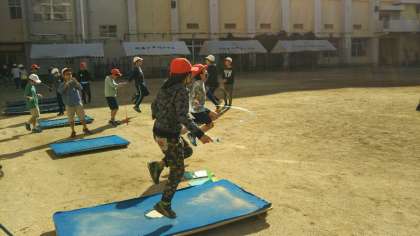 子どもたちが、なわとびを練習するジャンピングボードを出しました。