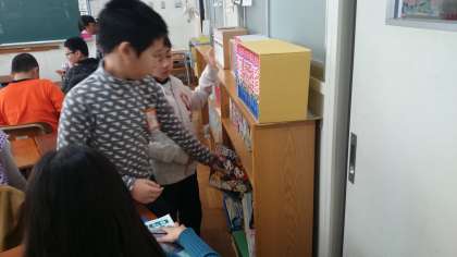 多くの子どもたちが伝記・偉人伝を読んでいました。
