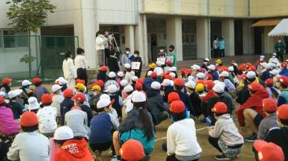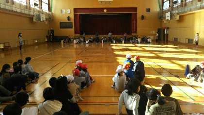 これまでは、テレビ放送で〇✖クイズの集会などをしたのですが、運動場と体育館に分散しての集会とはいえ、他の学年の児童と交流できることが、子どもたちはとても楽しそうでした。