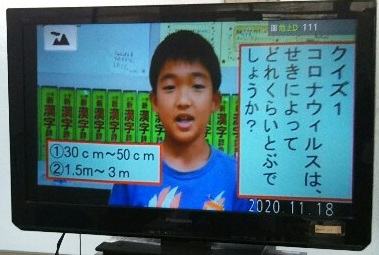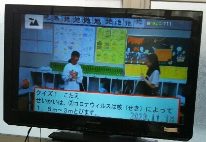 今日の児童集会は、テレビ放送で健康委員会の発表を見ました。