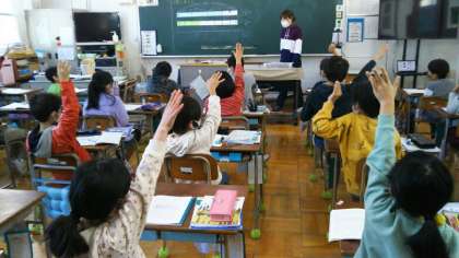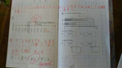 3年生算数「分数」の学習を少人数指導で行っています。3学級を4グルーブの少人数に分け学習することで、学級単位で行う場合より発表する機会が増えています。