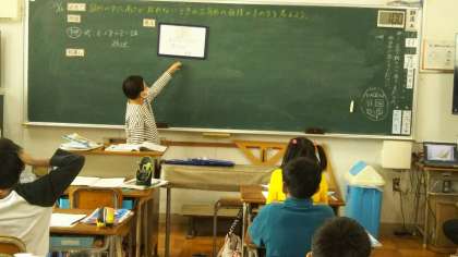5年生算数「三角形の面積」の求め方を、既習の平行四辺形の面積の求め方を使って考えていました。