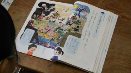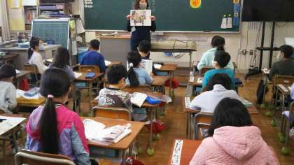 先生が、「知っている昔話を教えてください。」と尋ねると、次々と知っている昔話を発表していました。