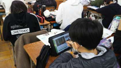 一人一人が課題を持って、タブレットPCを活用して調べ学習をしていました。
