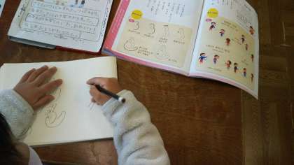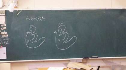 こんなふうに歌いながら、たぬきの絵をかいていました。