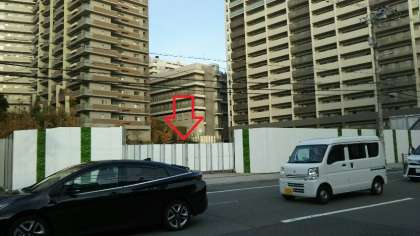 通学路途中でマンション建設が予定されていて、2月1日から工事車両の出入りがあります。