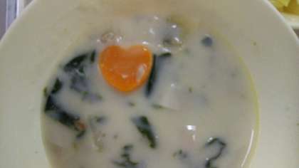 2月8日(月)のメニューにほうれんそうのクリームシチューがあり、この中にハート形をしたニンジンが入っていると、それはラッキーニンジンでした。