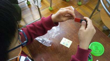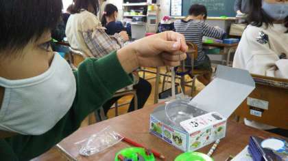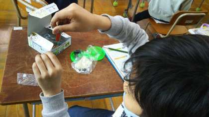 3年生が、真剣な表情で実験をしています。