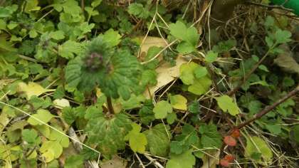 ホトケノザは、その葉の形が仏様の台座(蓮座)のように見えるというのが名前の由来です。まだ花は咲いていませんが、薄紫色の可愛らしい花を咲かせます。春がいよいよ近づいている感じがします。