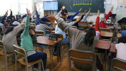 学級代表の選出では、2人の枠に4人の立候補があり、一人一人が代表委員会で頑張りたいことをアピールしました。その後、挙手で2人の代表を決めましたが、それぞれの立候補者に支持があり、決まった2人にはクラスのみんなから拍手が贈られました。