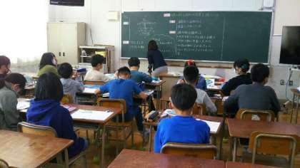 少人数授業には、学級担任の先生に加えて学年担当の先生も入り2学級を単純に3分割して、1グループあたりの人数を少なくして行う授業や習熟度別にグループ分けをして行う授業、1つの学級に主となって授業を進める先生(T1)と個別の支援を中心に行う先生(T2)でティームティーチングを行う方法などがあります。