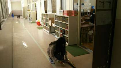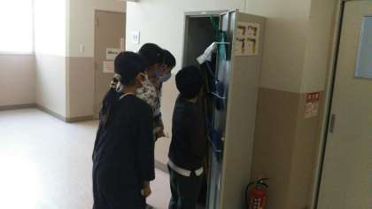 写真上中:美化委員会 掃除用具の点検