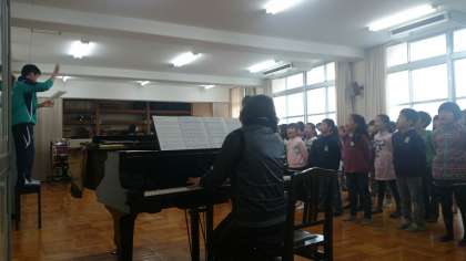 3月3日に行われたお祝い集会で歌った「ビリーブ」の練習風景です。
