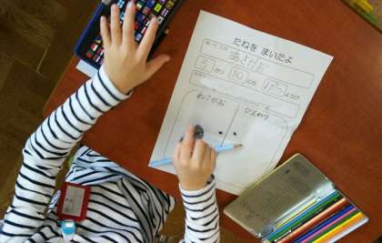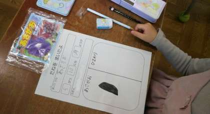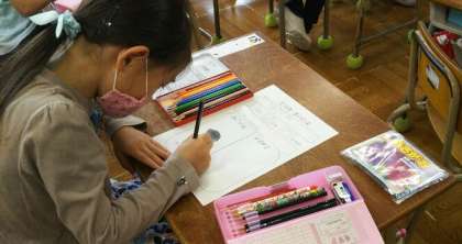 今日は、アサガオのたねの様子について、観察記録を書いていました。