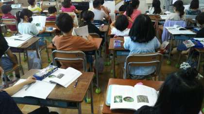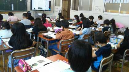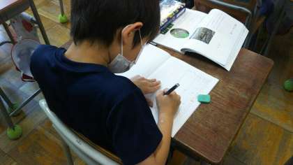 段落ごとに、どのようなことが書かれているか、読み取り短い文にまとめる学習をしているところです。文章をしっかり読んで、キーワードになる言葉をノートに書き留めていました。