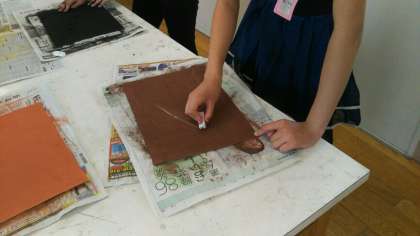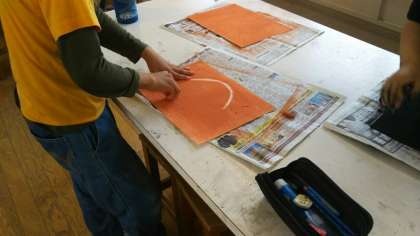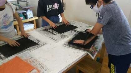 6年生が、図画工作で「消して かく」という題材に取り組んでいました。