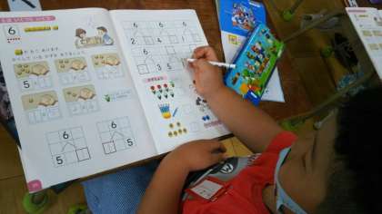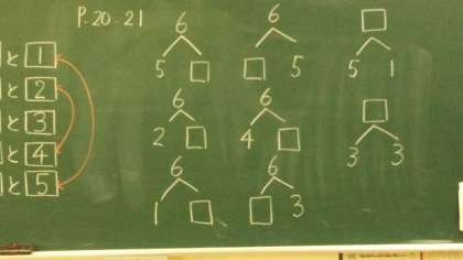 1年生が、算数で「6は、いくつといくつを合わせた数」かを学習していました。