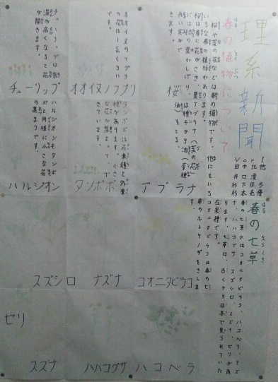 写真は、春の植物についてまとめたグループの新聞です。