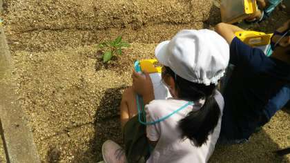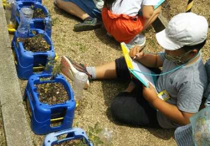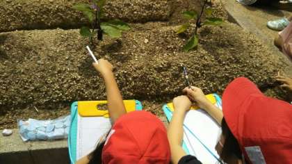 今日は、少しずつ大きくなってきた野菜の苗を観察していました。