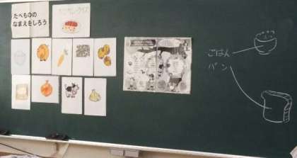 1年生では、まず食べ物の名前を知ることから学習を始めました。