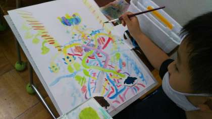 活動を通じて、形や色の美しさ・おもしろさに気付き、「これ、いい感じ!」と心を動かしているのが伝わってきます。
