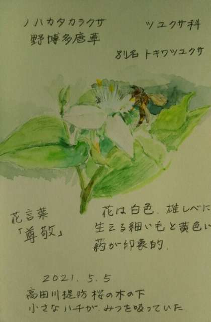 今頃から見られるツユクサ(露草)に葉が似ていますが、花の形はずいぶん違います。