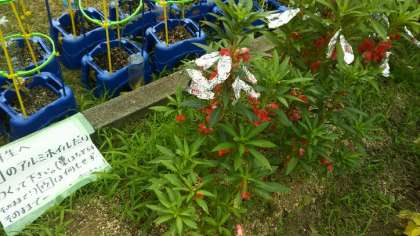 朝のうちに学習園の植物にアルミホイルがかぶせてありました。
