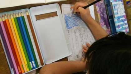 1年生は、さっそくプールに入ったことを作文に書いていました。