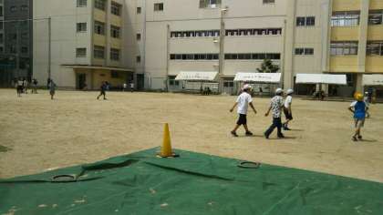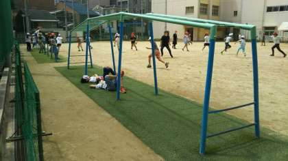 かげふみをして遊ぶ子や、人工芝に寝転がる子、思い思いに過ごしています。