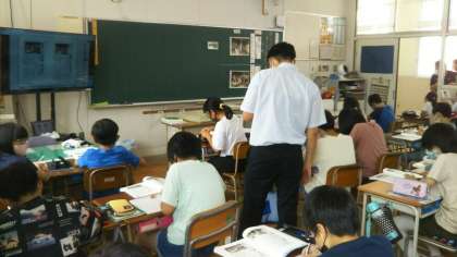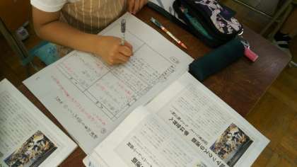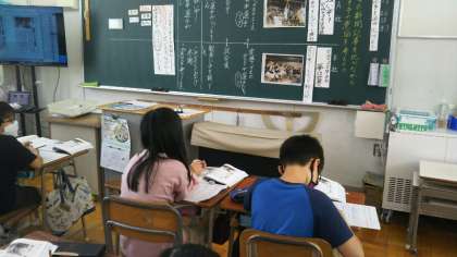 5年生が、国語の学習で、同じ出来事に対する取り上げ方が違う2社の新聞記事を、読み比べる学習をしています。