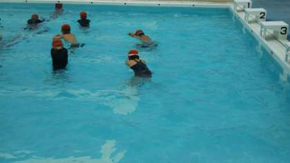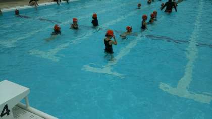 1年生が、プールに入っています。