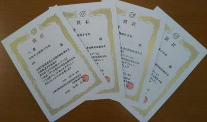 入選が1人と佳作が3人でした。来週の児童朝会で、全校児童に紹介して、表彰します。
